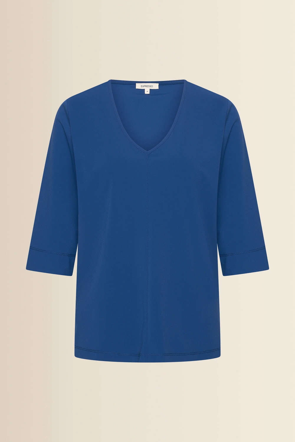 Traveltop met V-hals – soepele, comfortabele top met een relaxed fit en een cleane uitstraling. De V-hals en korte mouwen geven dit item een vrouwelijke, moderne look, terwijl de soepel travelstof prettig meebeweegt en mooi valt. Een veelzijdige essential die je eindeloos combineert: van een zelfverzekerde kantoorlook tot een stijlvolle outfit voor elke dag.