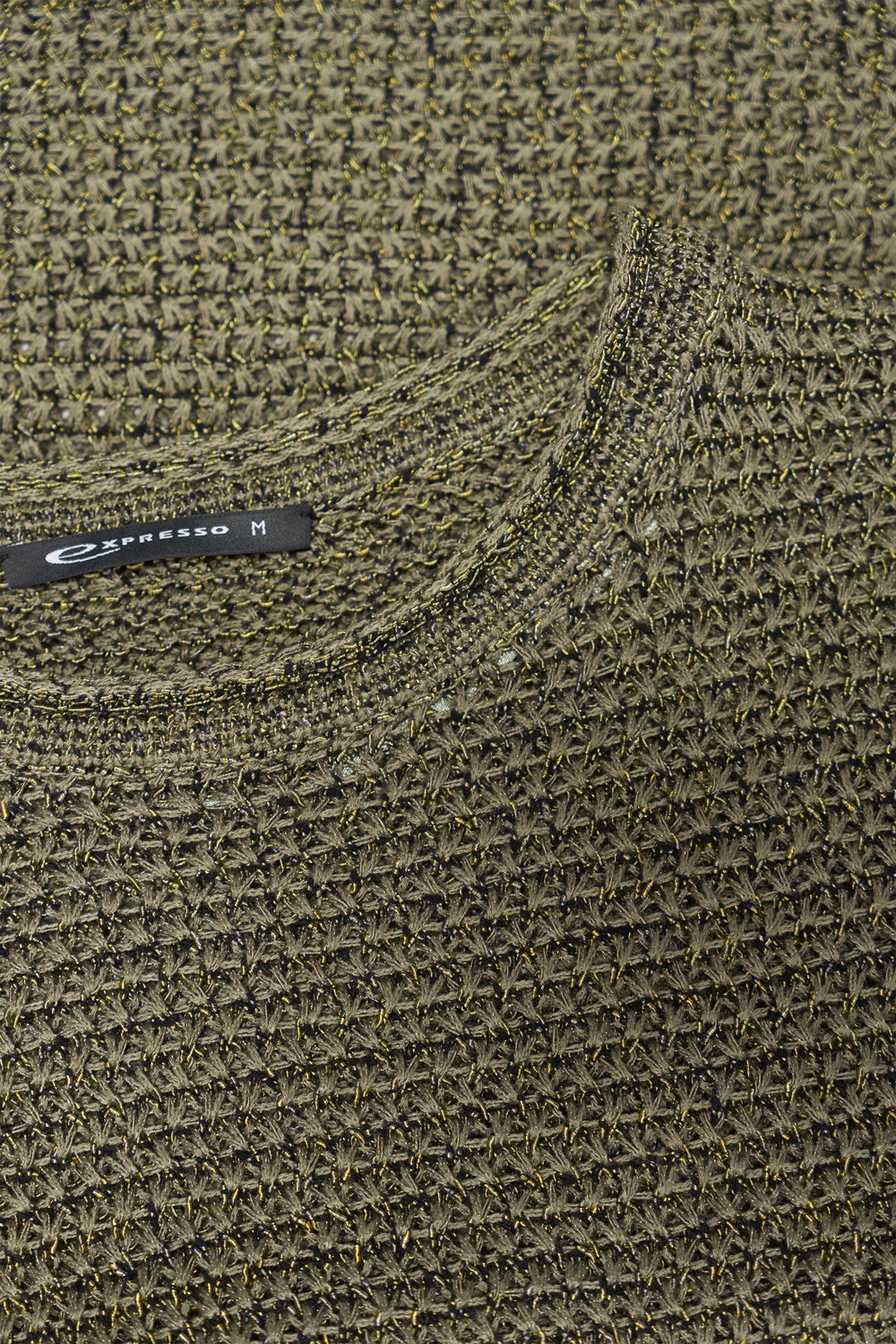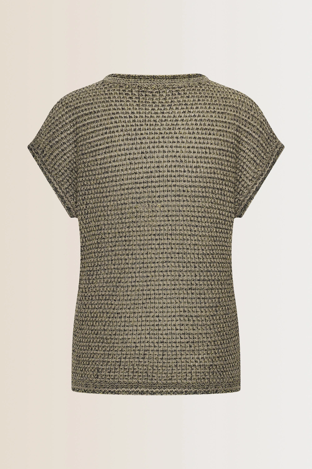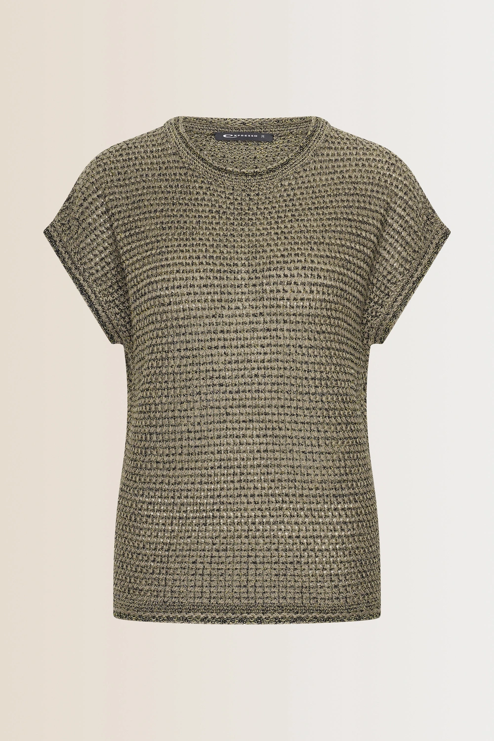 Olijf-shirt – katoenmix met een opengewerkt dessin. Relaxed fit, wijde ronde hals, korte aangeknipte mouwen. Het luchtige breisel ende rijke structuur maken dit T-shirt een ideale toevoeging aan je zomergarderobe. Perfect voor laagjes of als opvallend item op zichzelf.