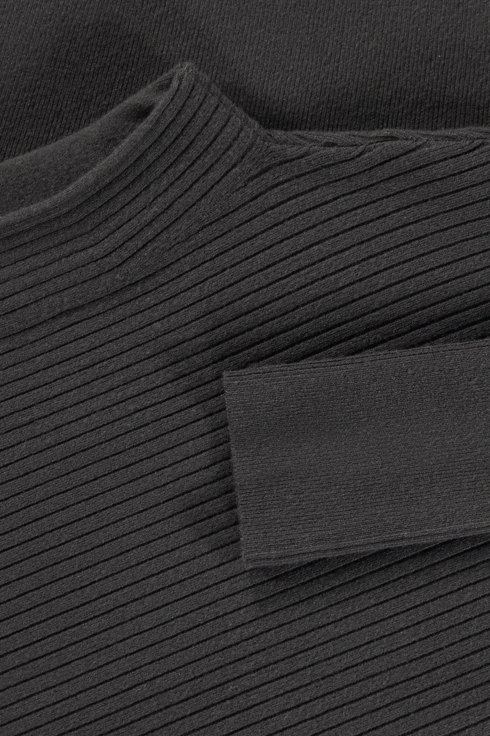 • Hoge zoomboord & manchetten, ribgebreid
