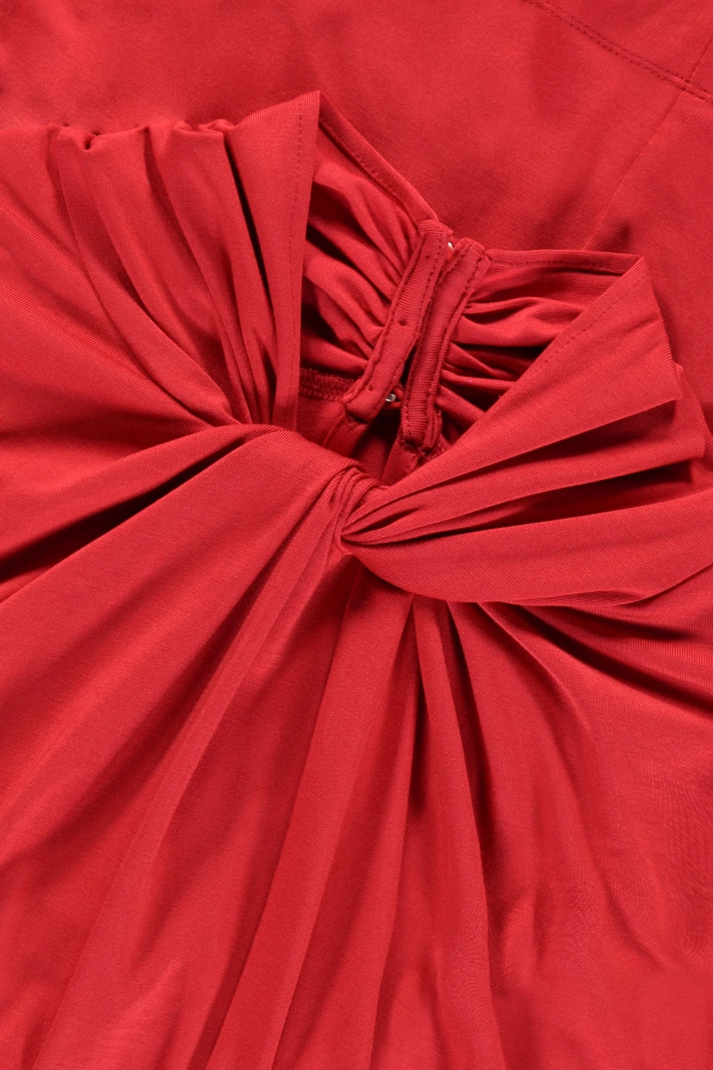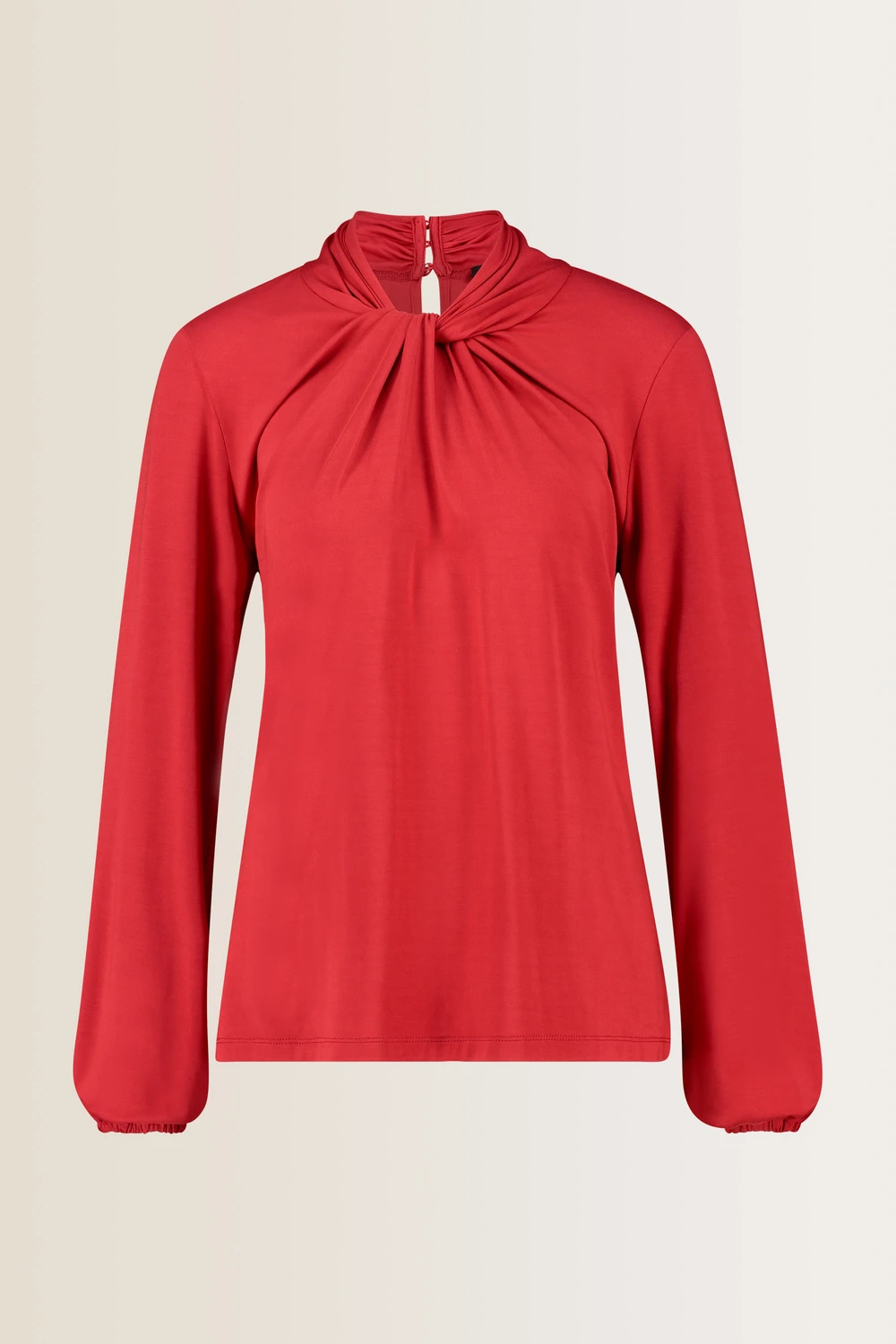 Helderrode top – stretch viscosemix. Semi-fitted, gedrapeerde turtleneck, lange mouwen. Gladde, licht glanzende stretch-jersey. Chique en vrouwelijke basistop, makkelijk combineerbaar. Tip: de twisted turtleneck staat prachtig onder een blazer.