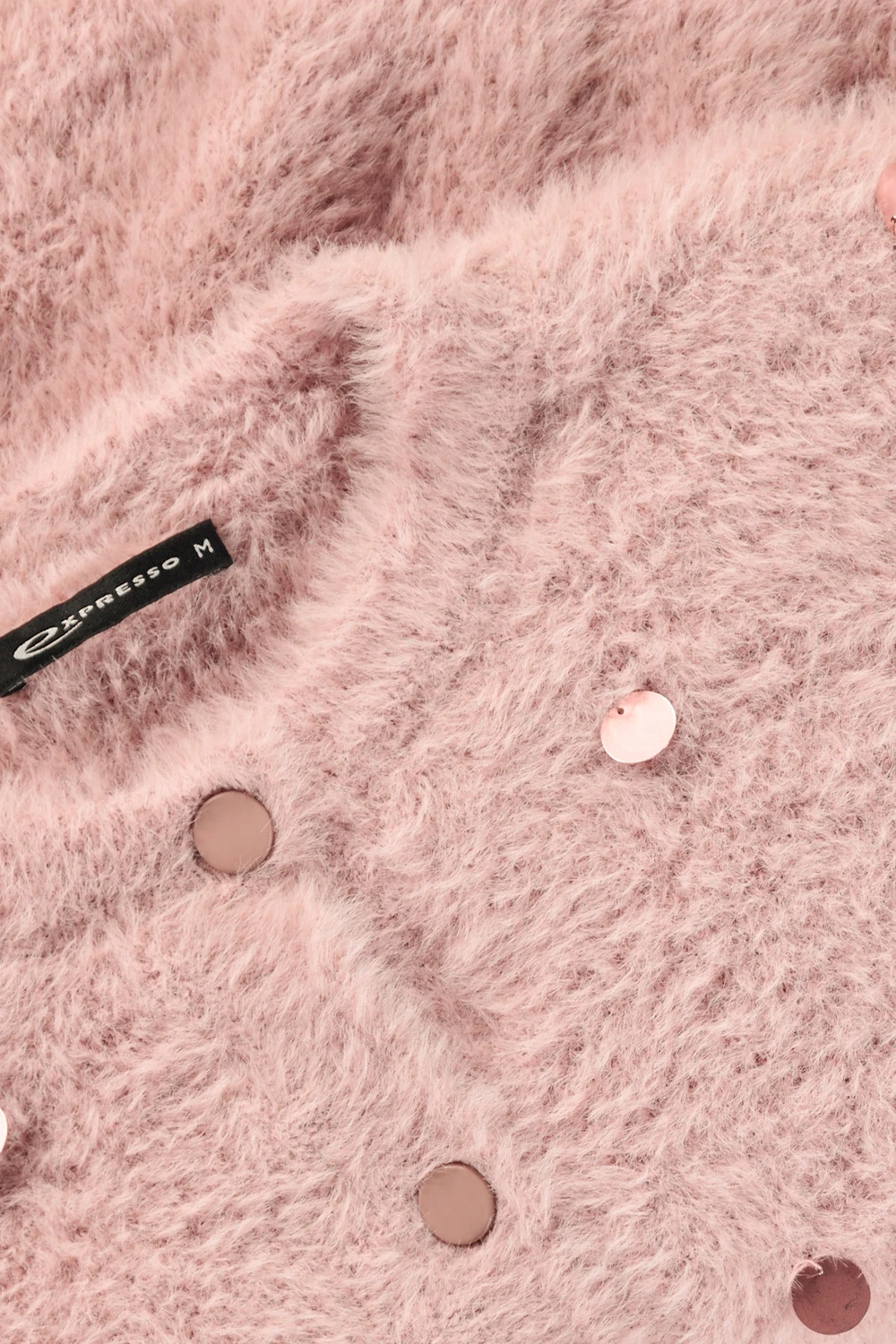 Roze vest – 100% polyamide. Regular fit, lange mouwen, ronde hals. Pailletten voor een sprankelende look. Dit vest is de perfecte keuze voor de winter, met zijn elegante knopen en glinsterende details. Voeg een vleugje glamour toe aan je dagelijkse outfit. Tip: combineer met een effen top en je favoriete jeans voor een stijlvolle, casual look.