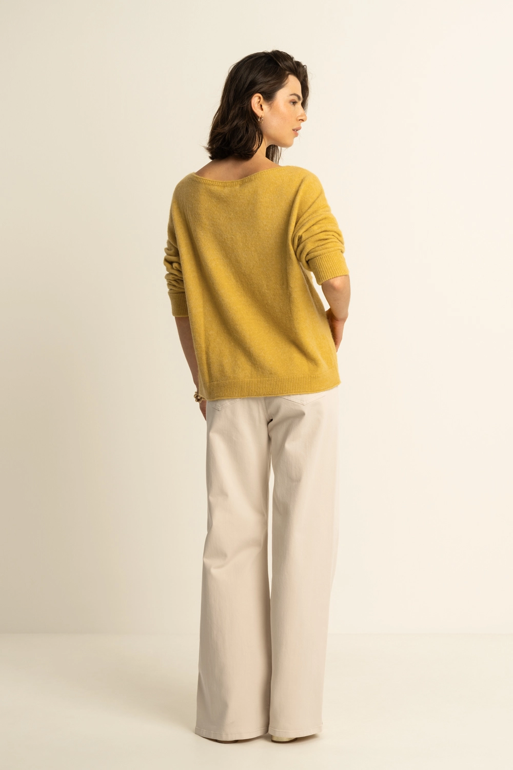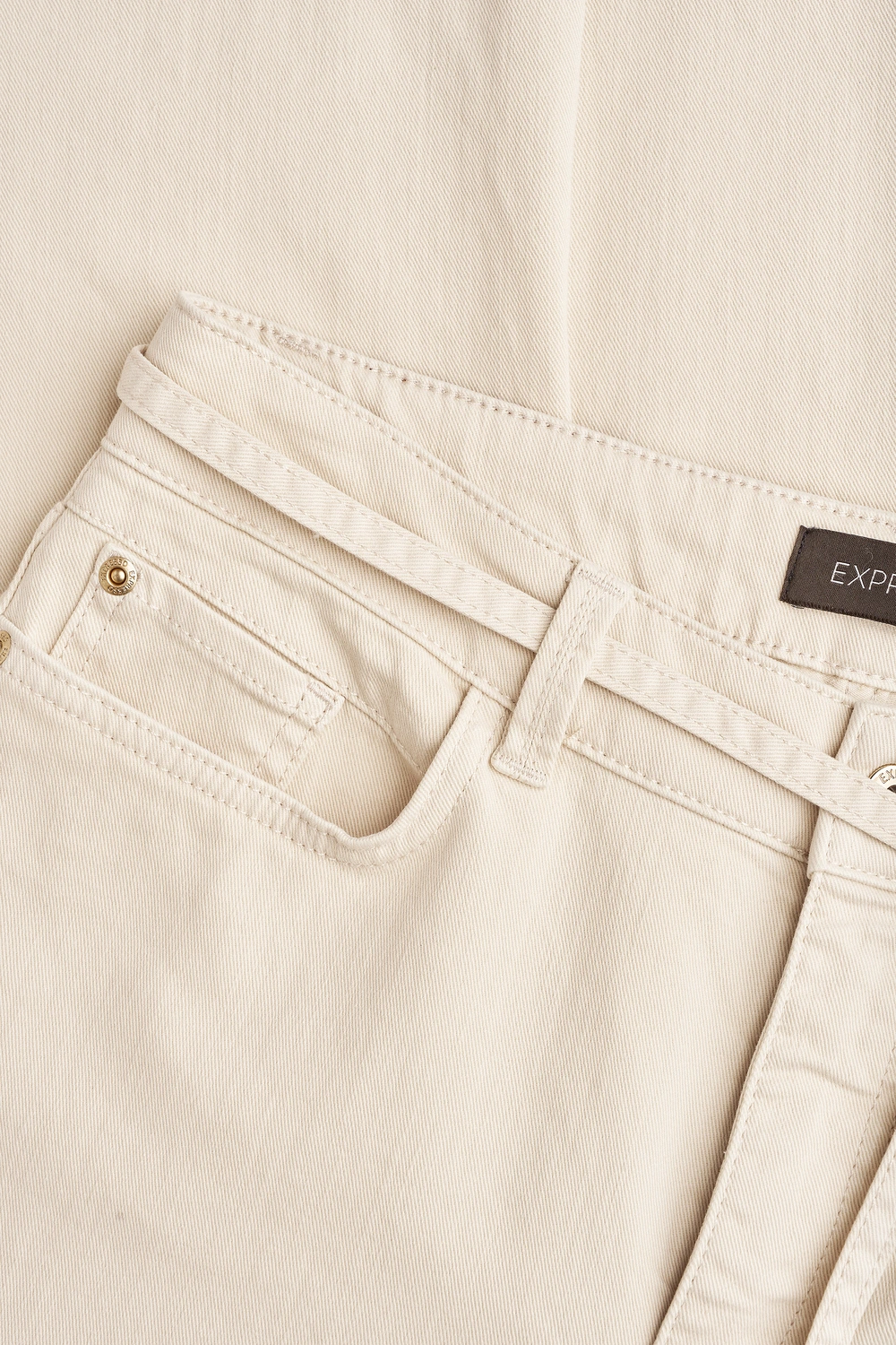 Ecru wide-leg jeans in model PARIS – stevige katoenmix met een zachte touch en comfortabele stretch. Mid-waist model met extra wijde pijpen en een nonchalant koordceintuur in de taille voor een eigentijdse twist. De jeans zit mooi aangesloten op de heup en valt soepel langs het been, wat zorgt voor een vrouwelijk en ontspannen silhouet. Perfect voor elke dag.