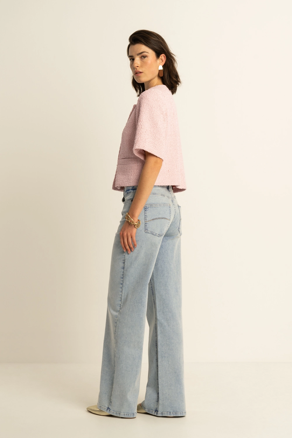 Wide-leg jeans in model PARIS – stevige katoenmix met een zachte touch en comfortabele stretch. Mid-waist model met extra wijde pijpen. De jeans zit mooi aangesloten op de heup en valt soepel langs het been, wat zorgt voor een vrouwelijk en ontspannen silhouet.
