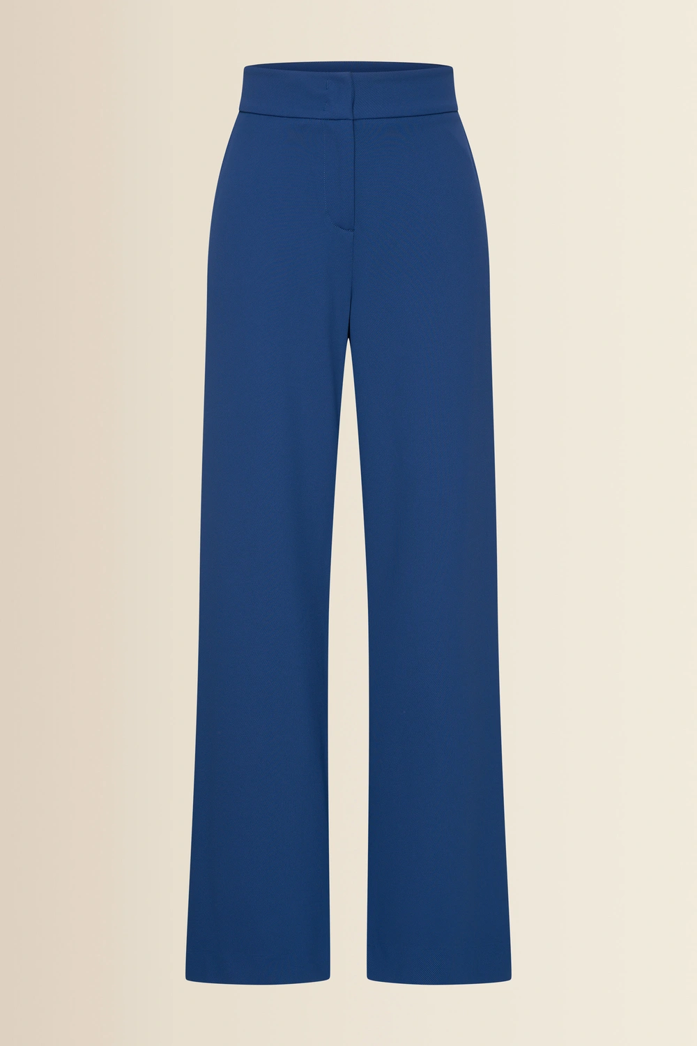 Blauwe wide leg pantalon – elegante pantalon met een krachtige, moderne uitstraling. De hoge taille en wijde pijpen zorgen voor een mooi, vrouwelijk silhouet, terwijl de stevige maar comfortabele stof garant staat voor een perfecte fit en een luxe look. Minimalistisch in detail, sterk in uitstraling: dit is zo’n item dat je eindeloos combineert.