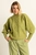 Lichtgroene broek – viscosemix met een elegante valling. De broek heeft een recht, wijd uitlopend silhouet met een hoge taille en scherpe vouwen aan de voorzijde die de lengte extra benadrukken. De moderne kleur geeft een frisse twist aan elke look, van zakelijk tot casual chic.