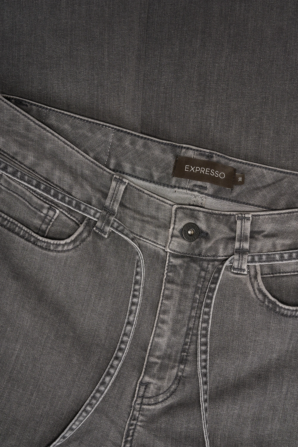 Grijze jeans – in model ROME. Deze jeans in washed grey heeft een moderne wide fit met een hoge taille en wijde uitlopende pijpen. De bijpassende strikceintuur accentueert subtiel de taille, terwijl de soepele denimkwaliteit comfortabel aanvoelt. Perfect te combineren met knitwear of een vrouwelijke blouse voor een nonchalante, eigentijdse look.