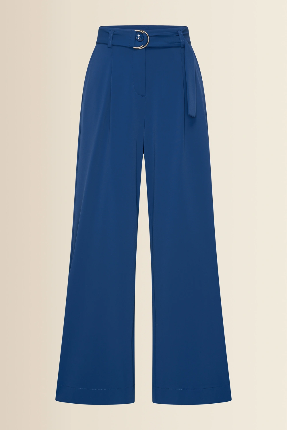 Wide leg broek met ceintuur – stijlvolle pantalon met een elegante, wijde pijp en een krachtige uitstraling in een comfortabele travelkwaliteit. De soepelvallende stof zorgt voor een mooie valling, terwijl de hoge taille en bijpassende ceintuur met ringdetail het silhouet vrouwelijk accentueren. Deze pantalon combineert comfort met een moderne look en is perfect voor zowel zakelijke als geklede momenten. Een echte key piece waarmee je moeiteloos indruk maakt.