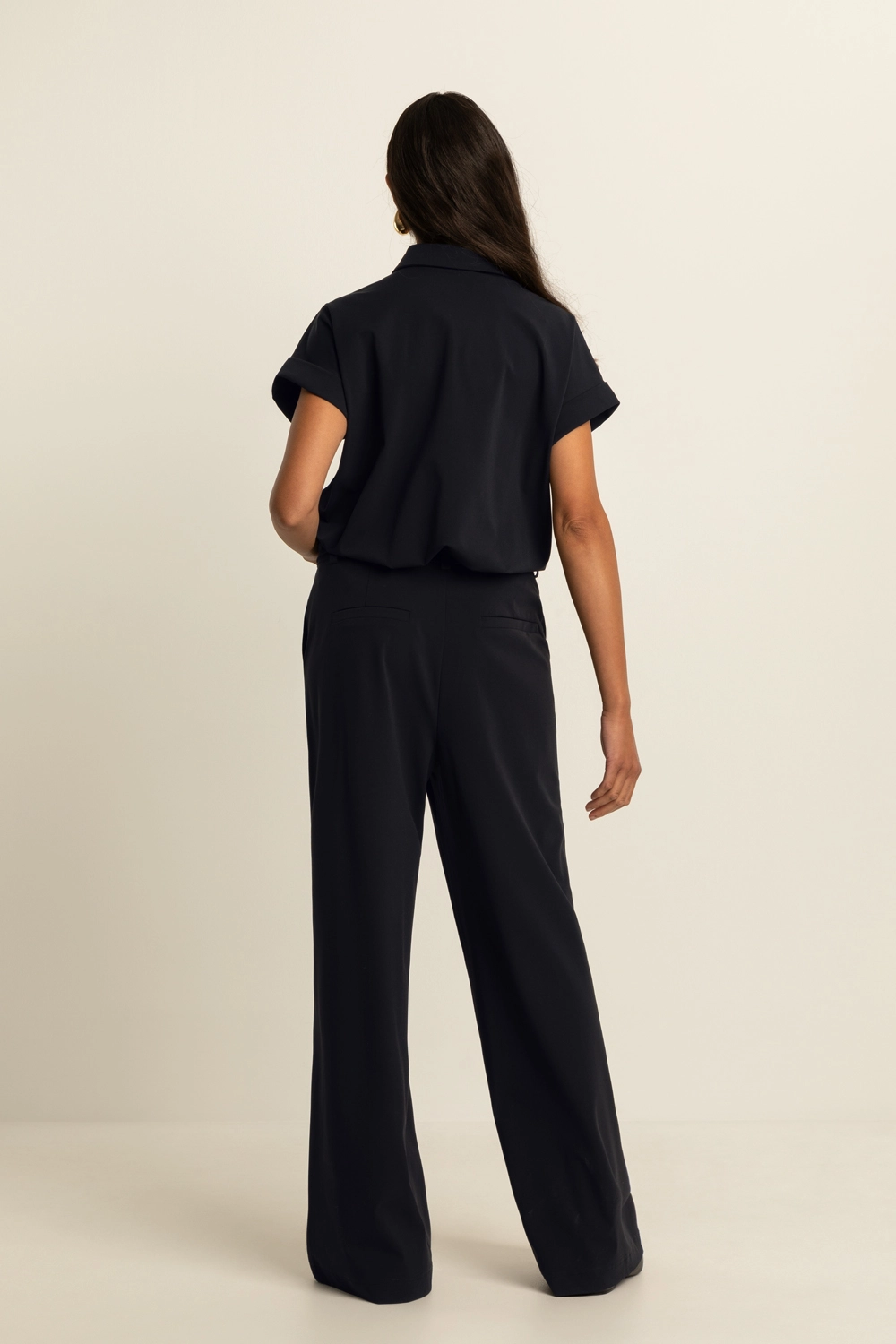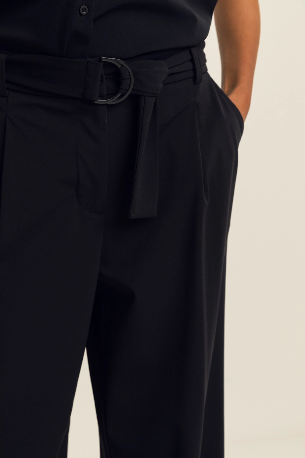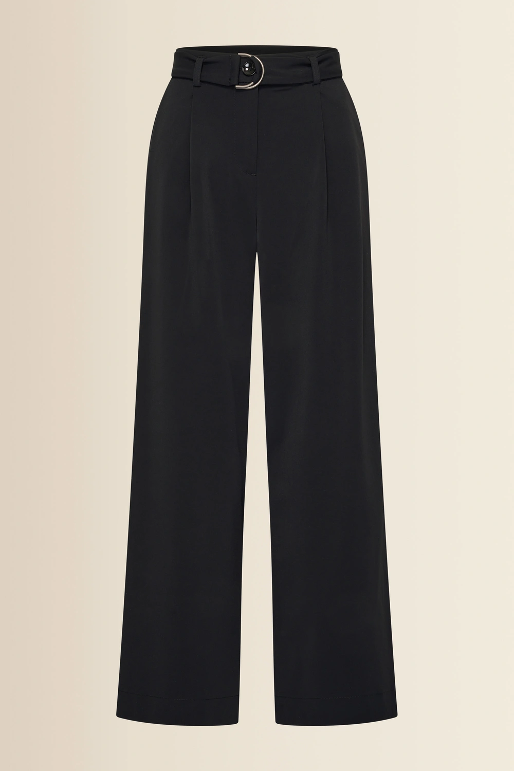 Wide leg broek met ceintuur – stijlvolle pantalon met een elegante, wijde pijp en een krachtige uitstraling in een comfortabele travelkwaliteit. De soepelvallende stof zorgt voor een mooie valling, terwijl de hoge taille en bijpassende ceintuur met ringdetail het silhouet vrouwelijk accentueren. Deze pantalon combineert comfort met een moderne look en is perfect voor zowel zakelijke als geklede momenten. Een echte key piece waarmee je moeiteloos indruk maakt.