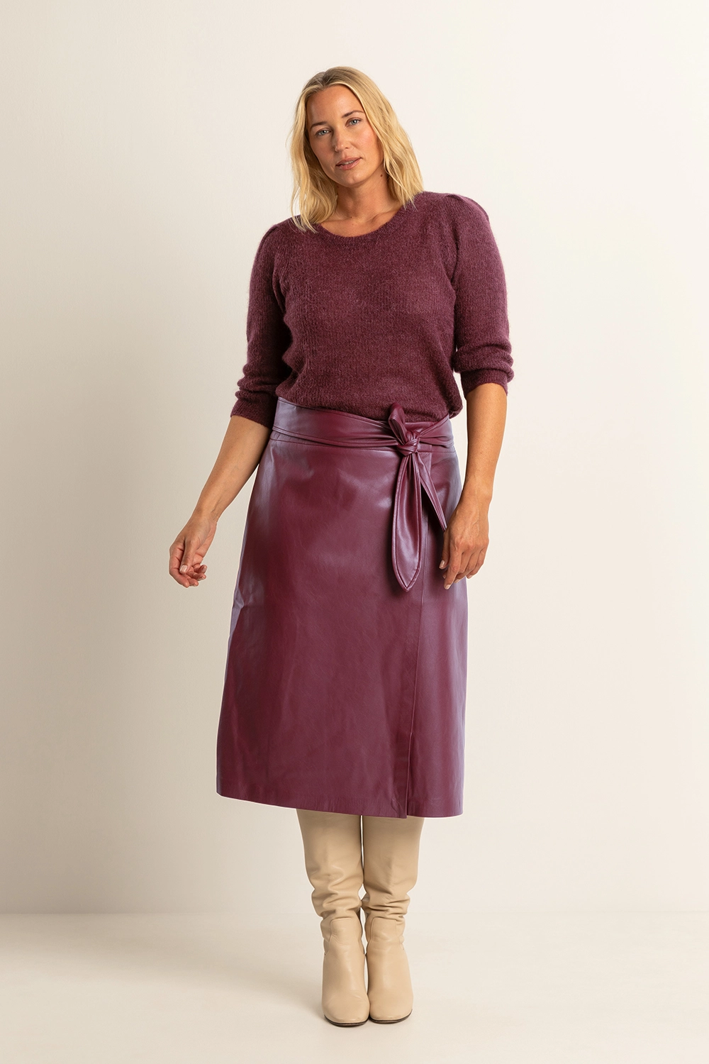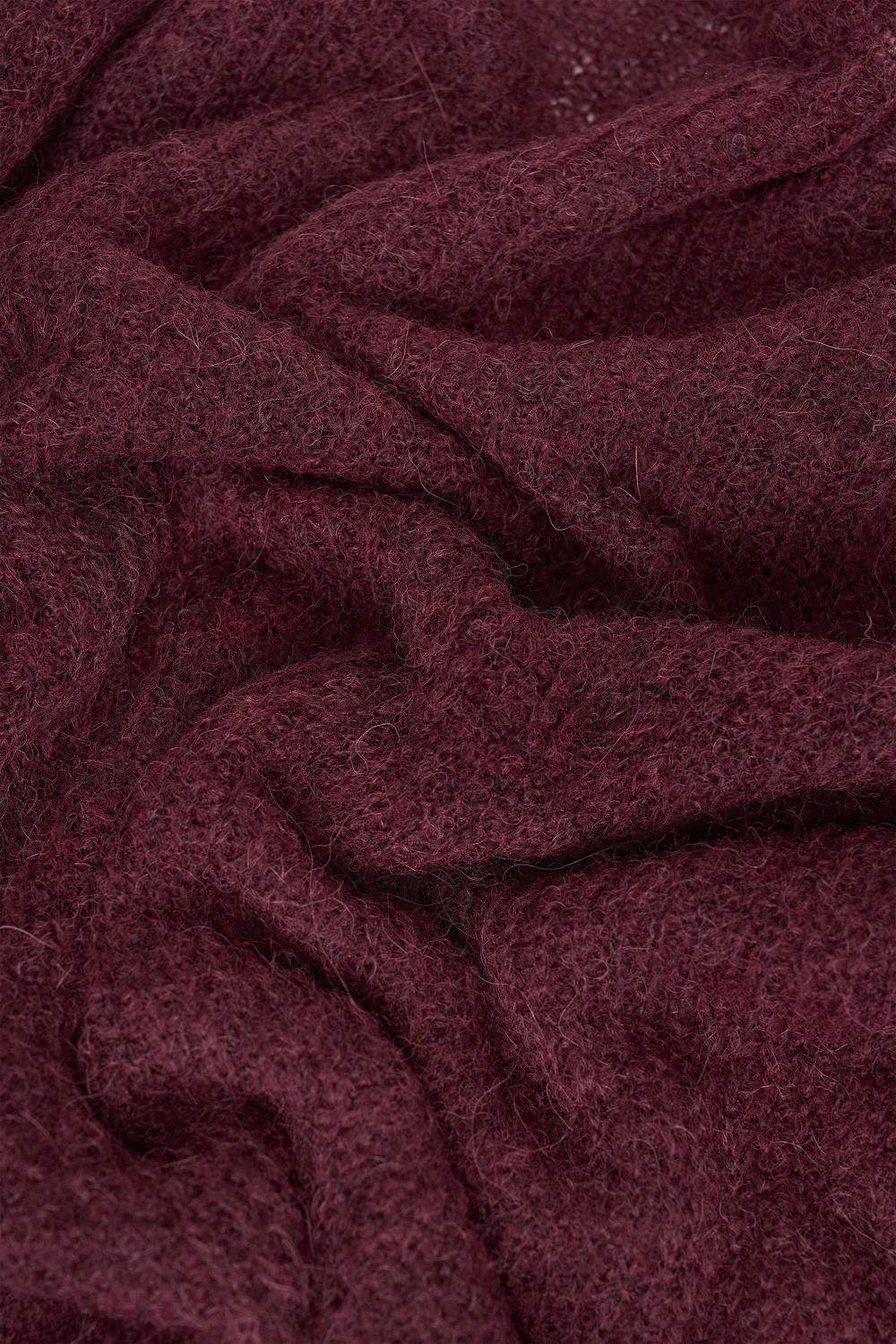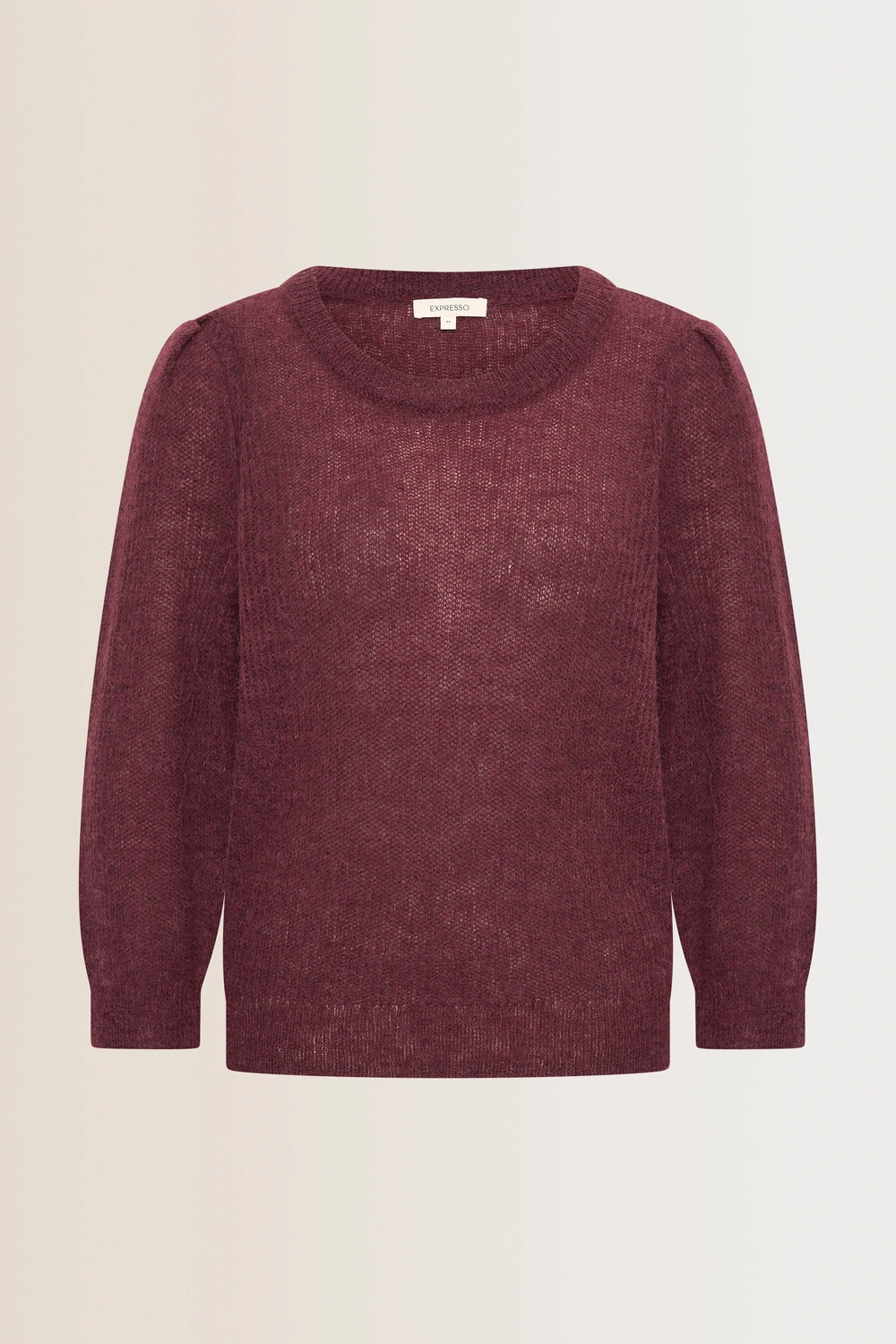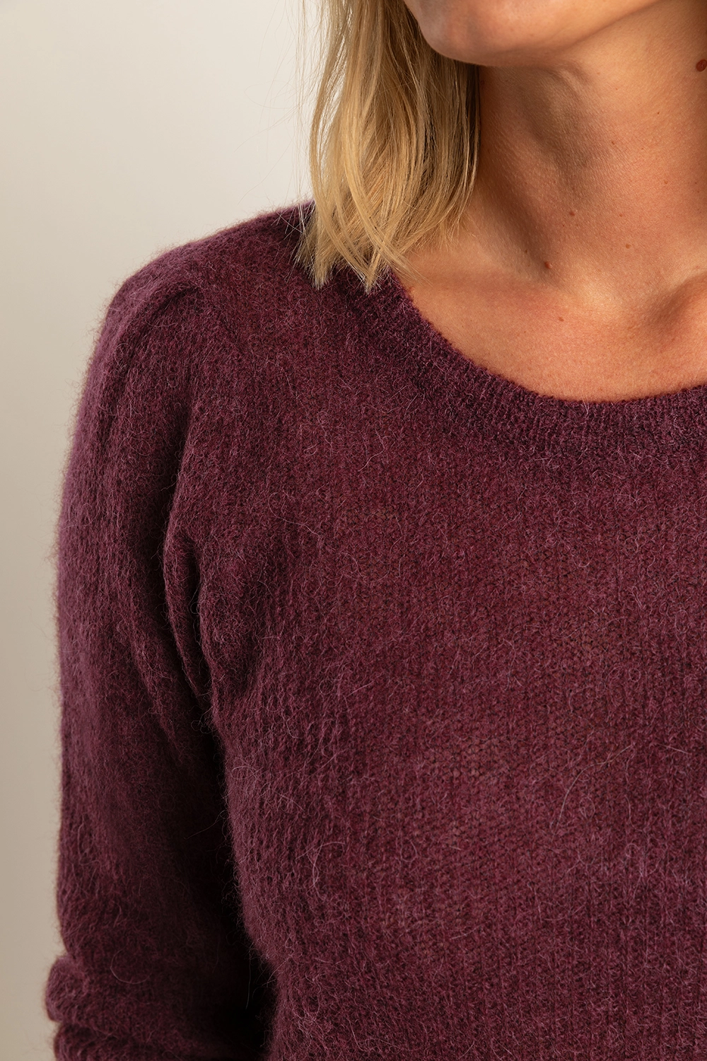 Dieprode trui – wolmix met alpaca. Licht oversized model met een wijde ronde hals en lange, licht geplooide mouwen. Het luchtige breisel voelt zacht aan en geeft elke outfit een vrouwelijke touch. Perfect voor frisse dagen, van casual tot gekleed.