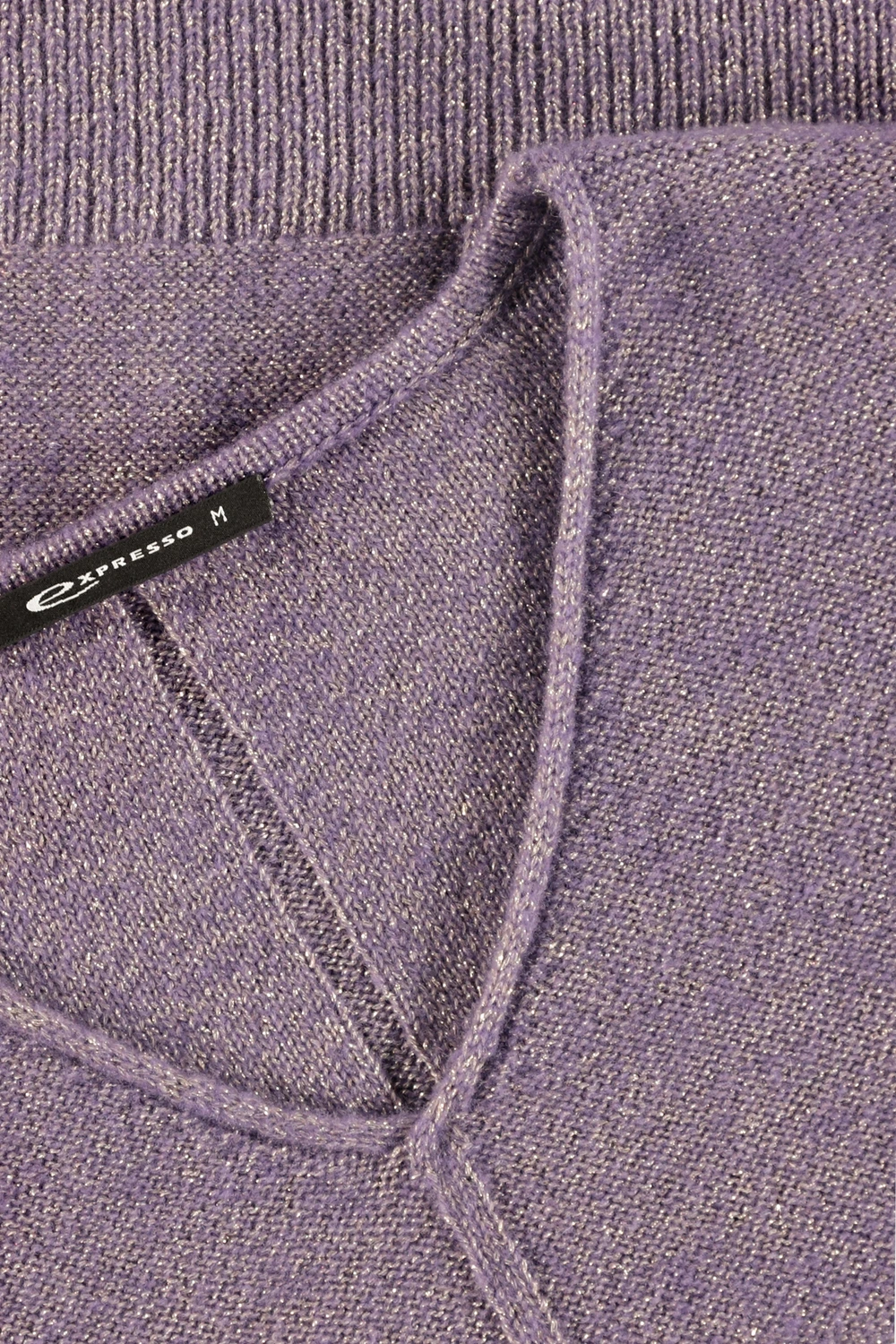 Lila trui – wolmix met lurex. Relaxed & licht bloezend, V-hals, lange mouwen. Zacht en wollig, subtiel sparkly, averechtse structuur. Eindelijk sweater weather, tijd om te investeren in warme truien en vesten. Deze luxe V-hals trui is niet te zwaar en houdt je stijlvol warm.